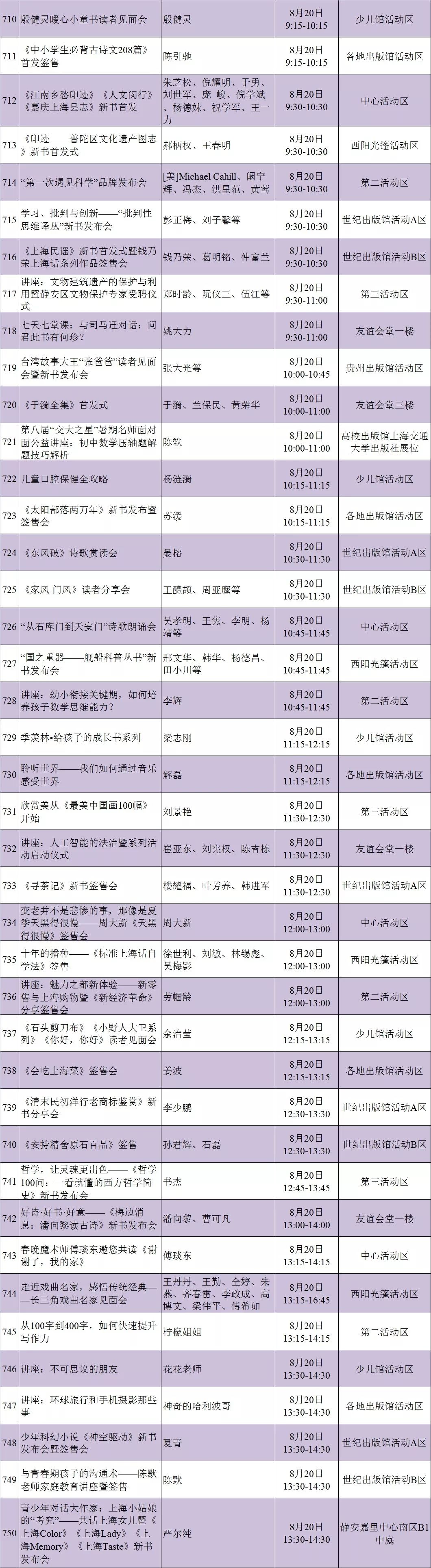 约上三五好友挑选喜爱的图书,更不要忘记参加书展活动哦。还有各类精彩讲座、新书发布会、读者见面会、签售会等800余项活动等你来参加。今天小编就为大家带来了详细的活动时间安排!