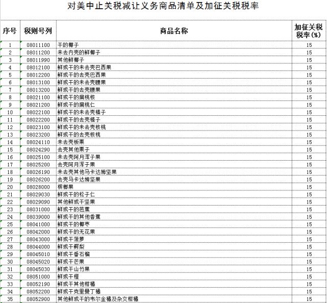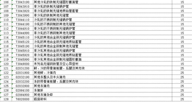 通知明确,我国自2018年4月2日起对原产于美国的7类128项进口商品中止关税减让义务,在现行适用关税税率基础上加征关税,对水果及制品等120项进口商品加征关税税率为15%,对猪肉及制品等8项进口商品加征关税税率为25%。现行保税、减免税政策不变。