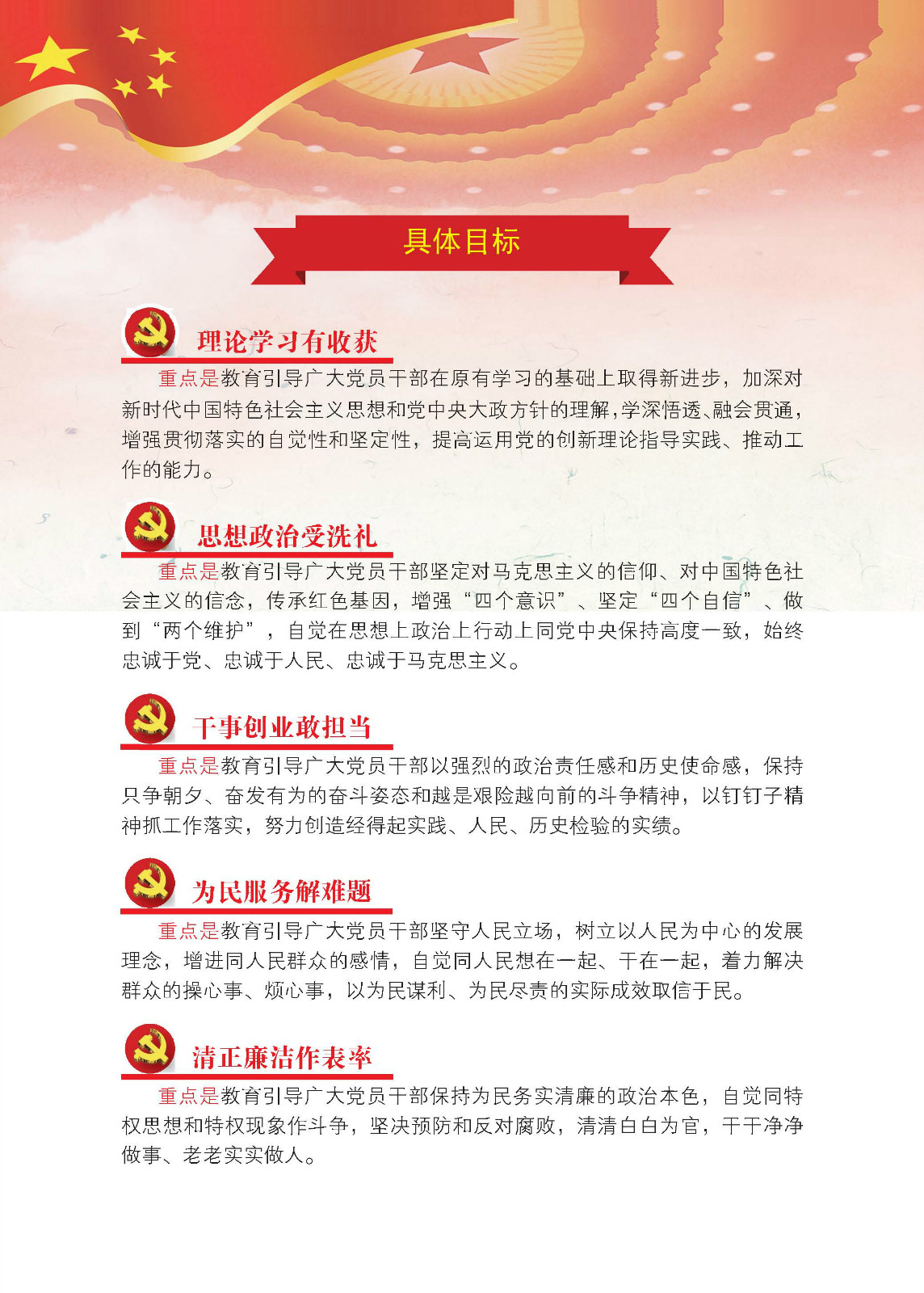 ▲全面落实中共中央政治局主题教育会议的总体部署、任务目标和“四要”要求