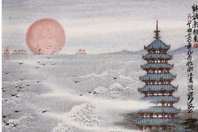壮美山水,笔墨为象。钱塘江边,潮水宁静无声,白色的雾气,氤氲翻腾,远处的六和塔,若隐若现——这幅曾经无数次出现在浙江画院院长孙永笔下的画面,用激荡的钱江潮象征浙商精神,让人心存敬意。