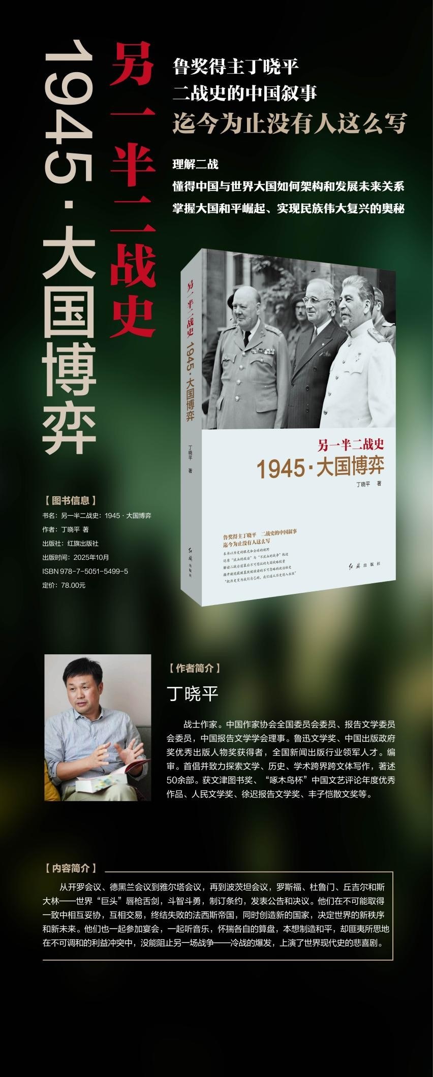 为纪念中国人民抗日战争暨世界反法西斯战争胜利80周年,红旗出版社携手丁晓平,历经数年精心打磨修订,于2025年10月隆重推出《另一半二战史:1945·大国博弈》新版(ISBN 978-7-5661-5499-5)。